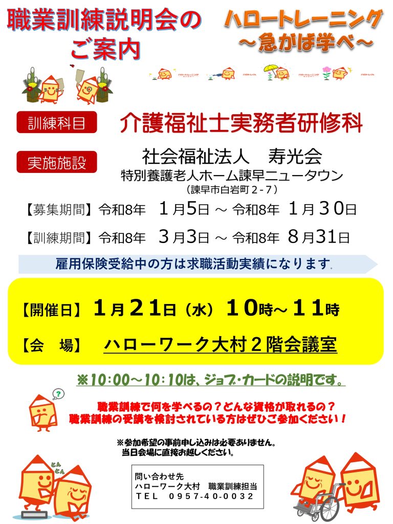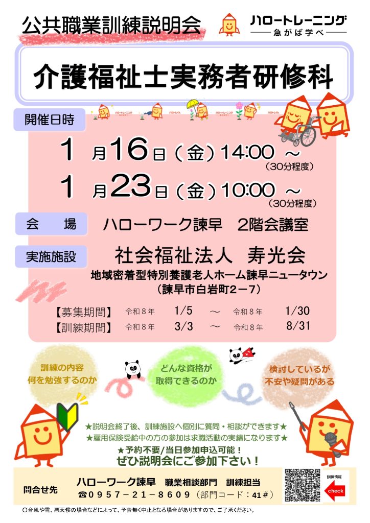 ハローワーク諫早と大村で標記説明会が開催されます🥰