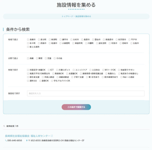 法人ごとに専用ページを設け、PR文章・写真・動画、見学会や説明会の案内などを自由に更新できます。これまで長崎県社協が代行していた情報掲載は、法人自身がタイムリーに発信できる仕組みに。これにより、イベント告知や魅力発信のスピードが格段に向上します。