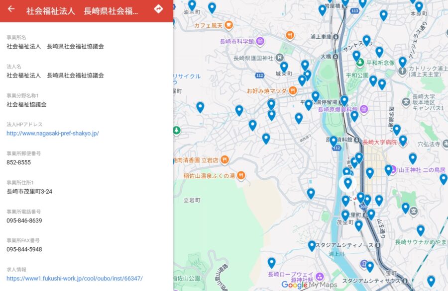 求人登録事業所を、welなが内のGoogleマップ上に表示します。求職者は「通いやすさ」などの視点で法人を検索でき、クリック一つで所在地や求人情報、法人ページにアクセス可能。地域に根ざした法人の強みを、より効果的にアピールできます。