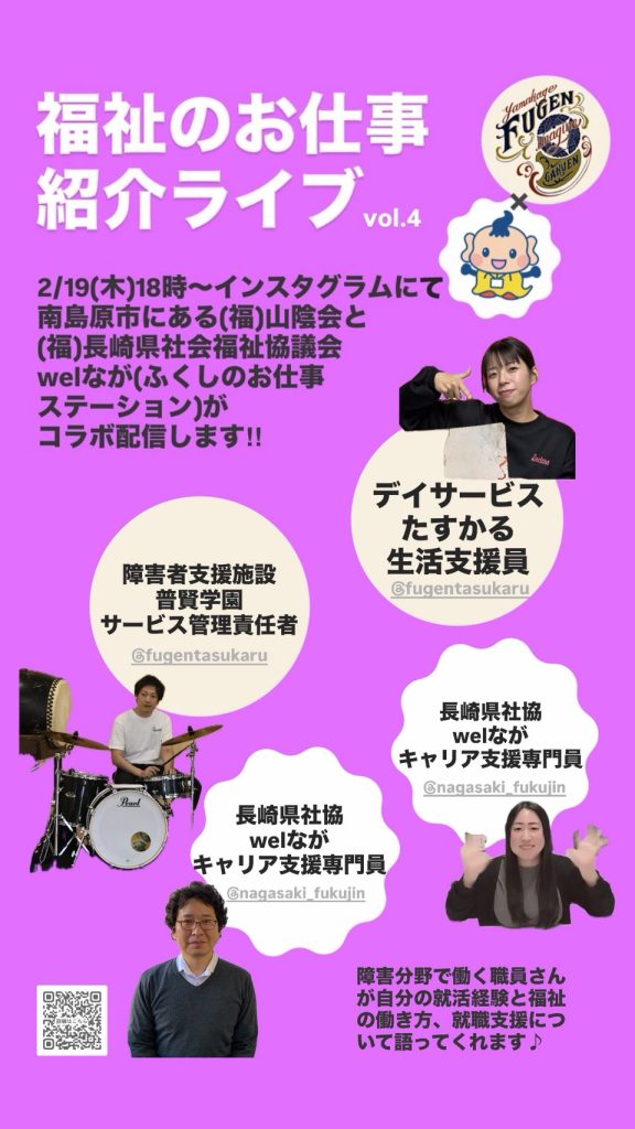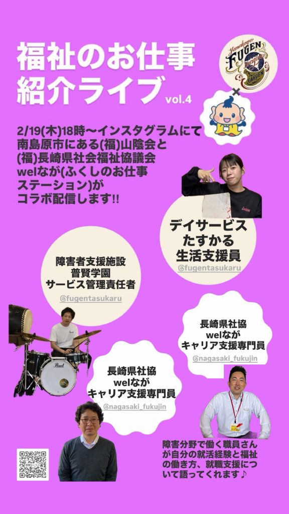 ~福祉の仕事紹介~(福)山陰会 × (福)長崎県社協 welなが(ふくしのお仕事ステーション) インスタグラム コラボライブ配信
