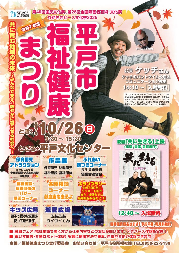 ※平戸市福祉健康まつりも同時開催!!ケッチのパントマイム公演、コミュニケーション教室、映画「共に生きる」上映などの各種イベントあり🎉